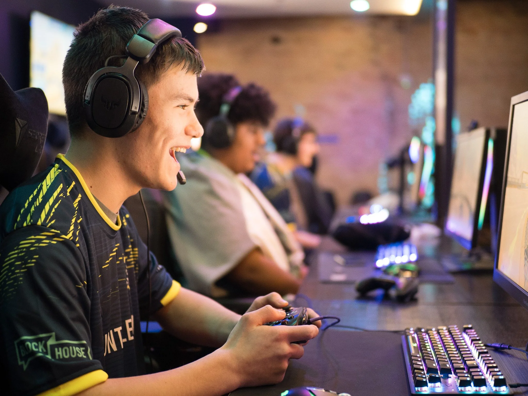 Our youth leagues are built to give younger players a fun, welcoming way into competitive gaming through Smash, Rocket League, and Fortnite. With scholarships, school-based competitions and open youth events, Block House gives players room to learn, compete, and keep growing. -